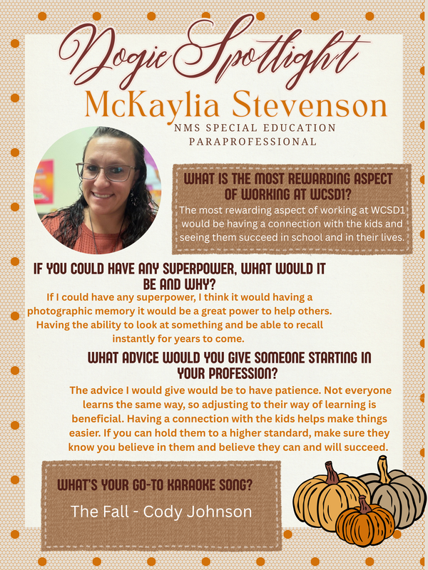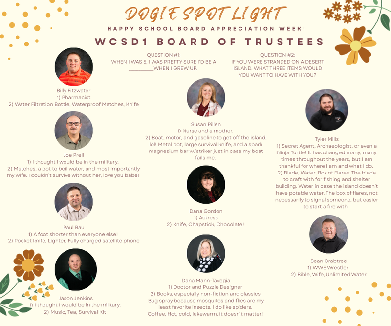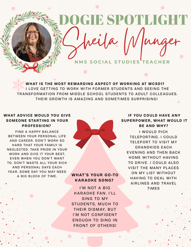 WCSD1 DOGIE SPOTLIGHT We will have a weekly Dogie spotlight to shine a light on our amazing employees!